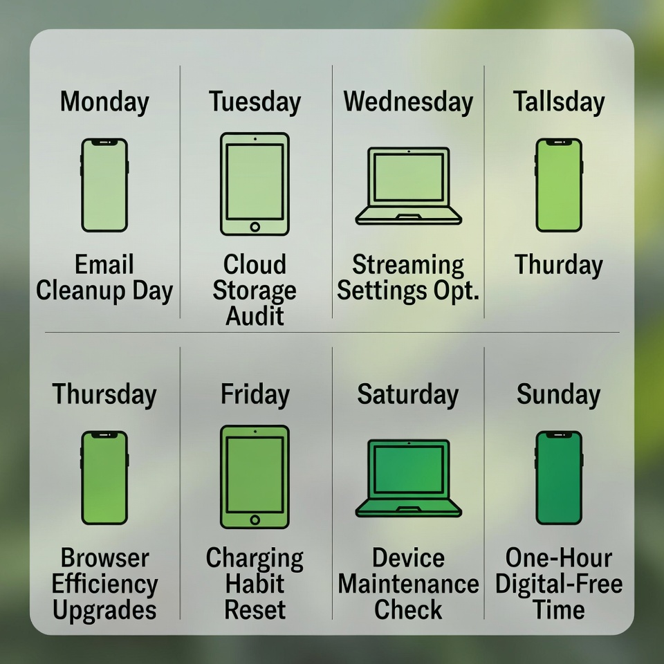 Start with one habit this week. Maybe clean up 50 old emails tonight. Or change your default streaming quality. Small steps create momentum. Your digital carbon footprint is one area where being lazy (using devices longer, streaming less) actually benefits the environment.