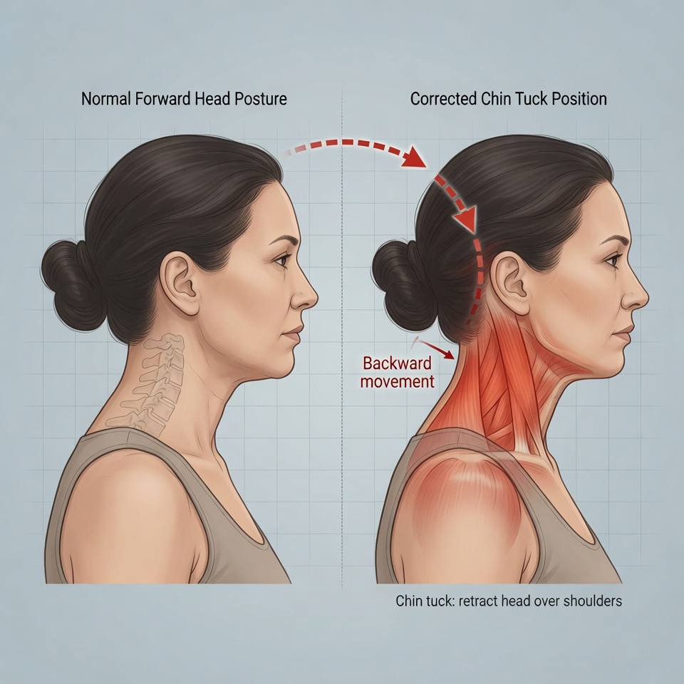 Exercício 5: Retração do pescoço e dobra do queixo (Tech Neck Fix) 📱