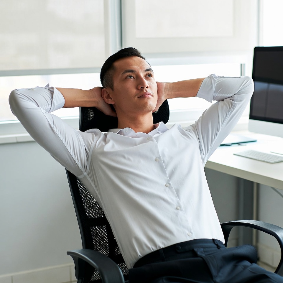 - Ombros arredondados: De estender a mão para frente até o teclado/mouse.