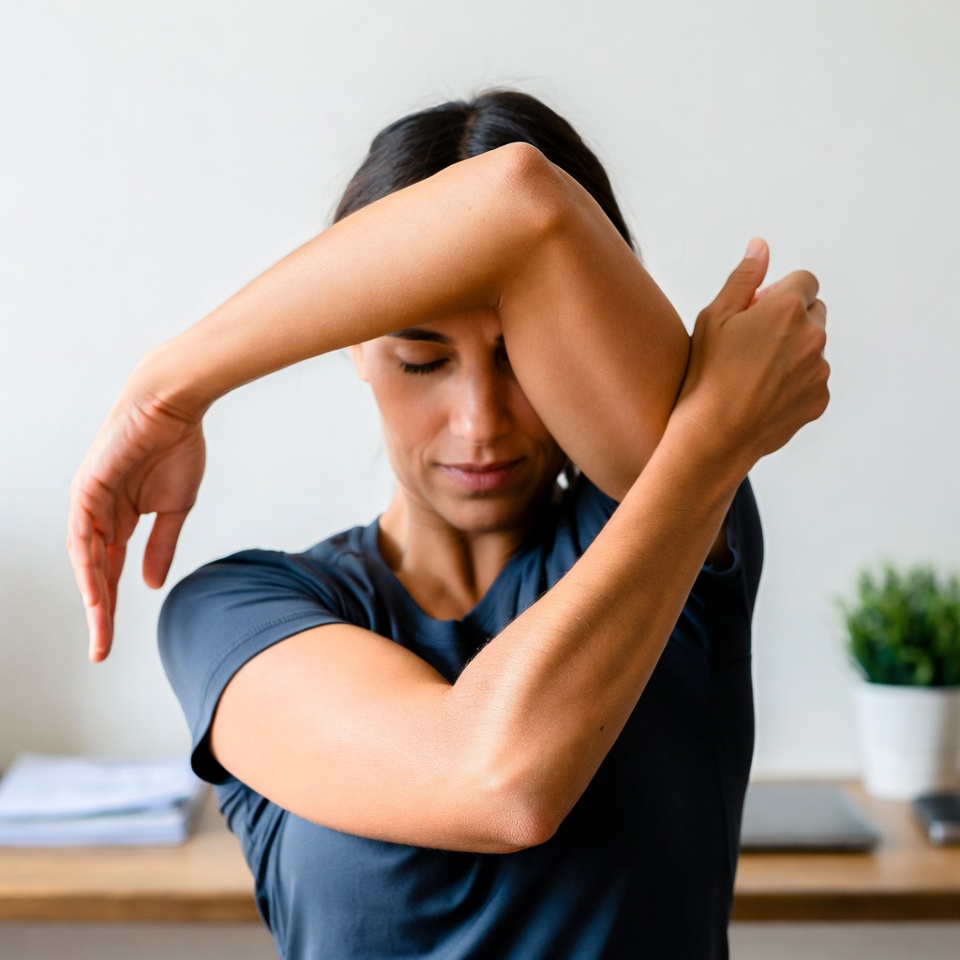 - Why It Works: This opens up the rotator cuff and scapular muscles, which get hunched and tight from typing and mousing.